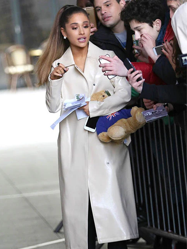 Ariana Grande White Leather Coat