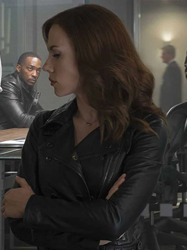 Captain America Civil War Scarlett Johansson Black Leather Jacket