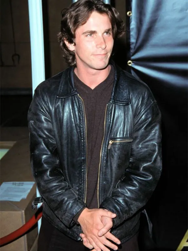 Christian Bale Actor Black Leather Jacket