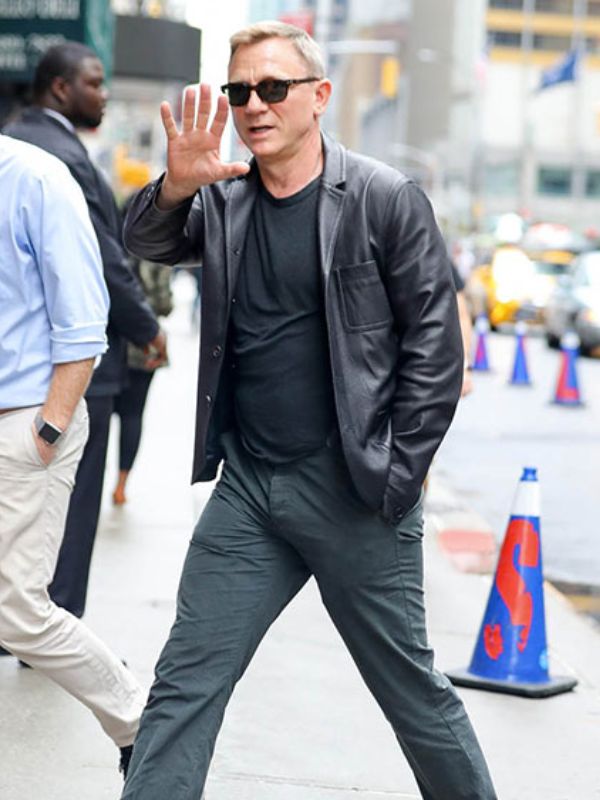Daniel Craig English Actor Black Leather Coat