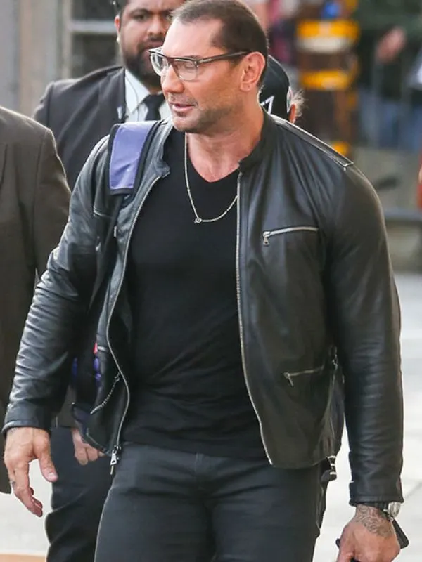 Jimmy Kimmel Live Dave Bautista Black Leather Jacket