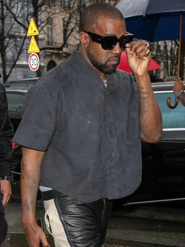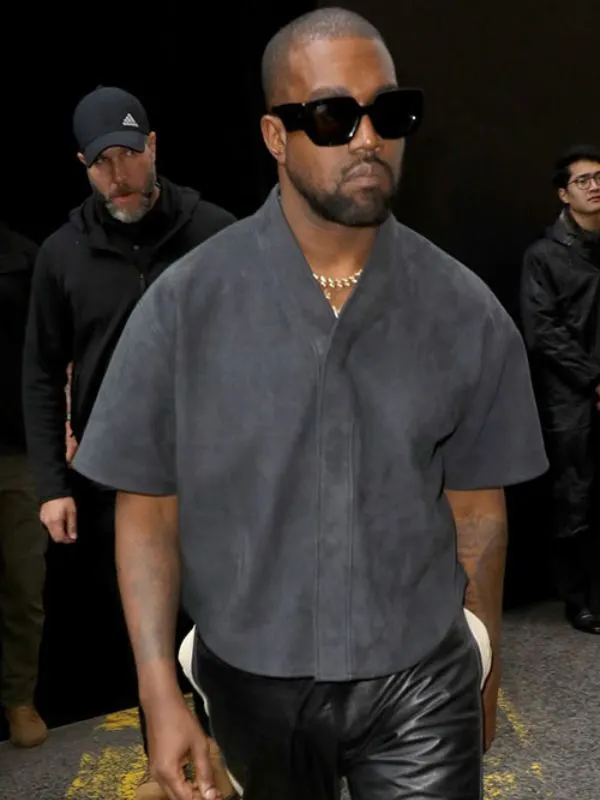 Kanye West American Rapper Gray Suede Leather Jacket