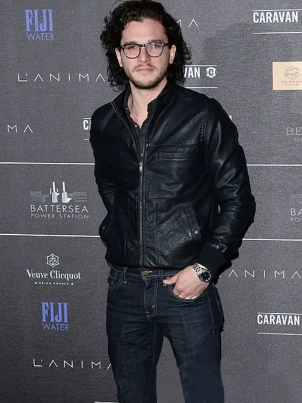Kit Harington Battersea Annual Party Black Leather Jacket