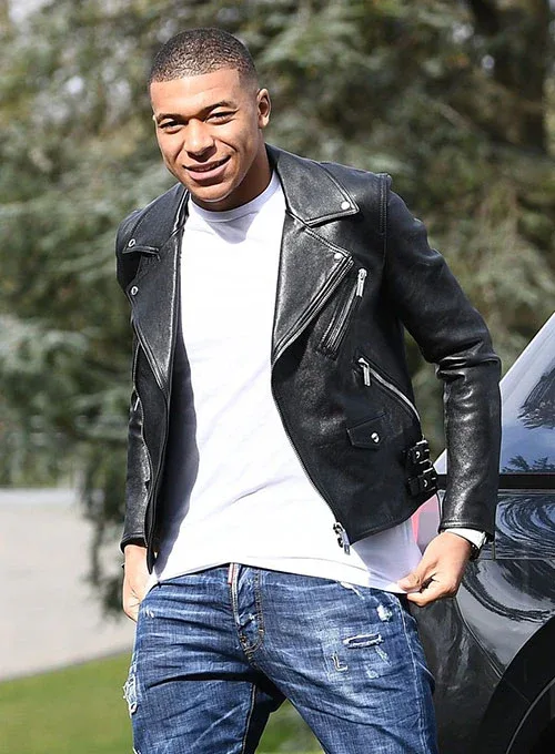 Kylian Mbappe Black Biker Jacket