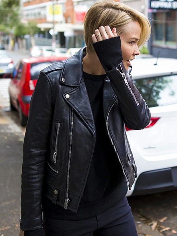 Lara Worthington Black Leather Biker Jacket