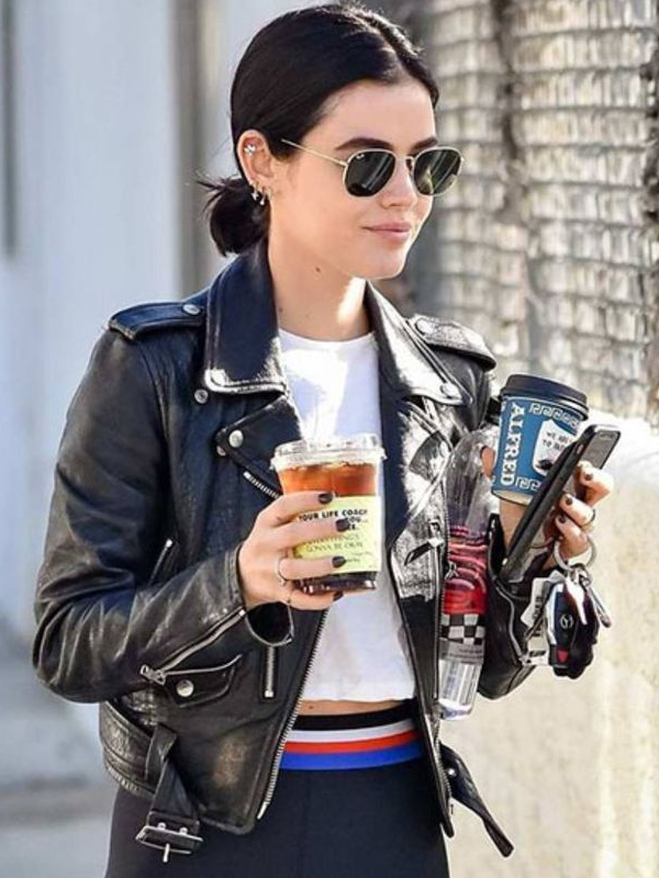 Lucy Hale Black Leather Biker Jacket