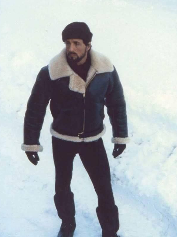 Rocky 4 Balboa Black Shearling Jacket