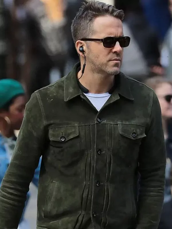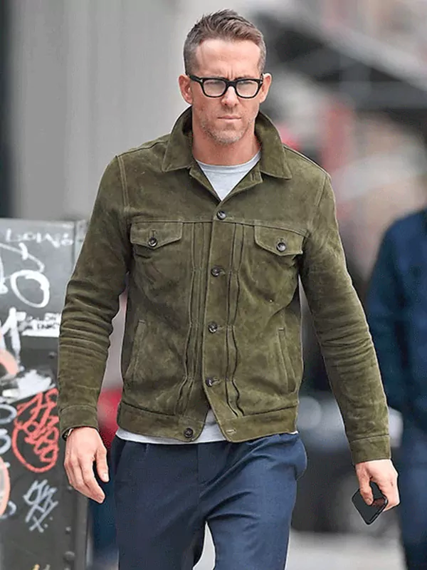 Red Notice Ryan Reynolds Green Leather Trucker Jacket
