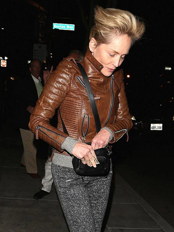 Sharon Stone Brown Leather Jacket