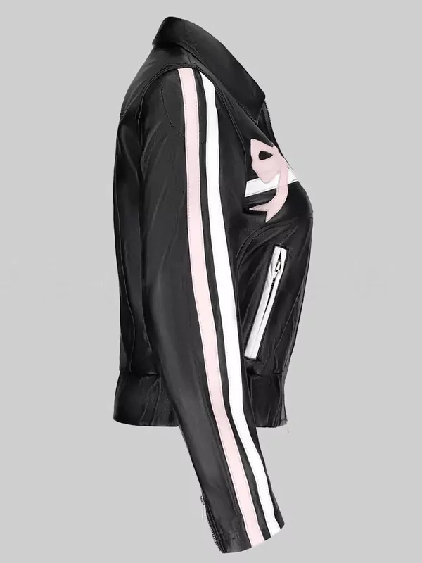Casual Wear Striped Bows Black Leather Ribbon Jacket