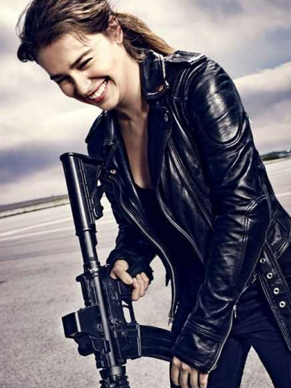 Terminator Genisys Sarah Connor Black Leather Biker Jacket