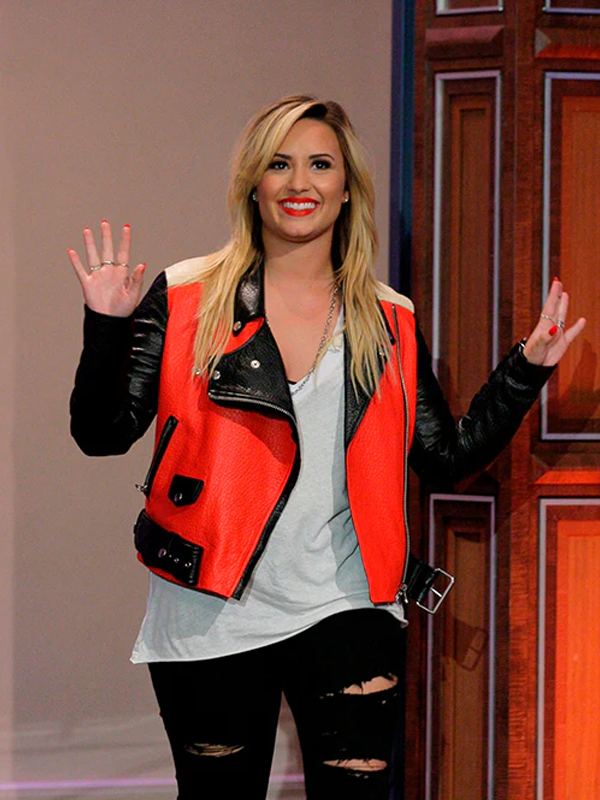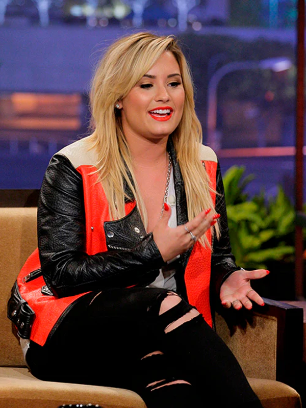 The Tonight Show Demi Lovato Red Leather Jacket