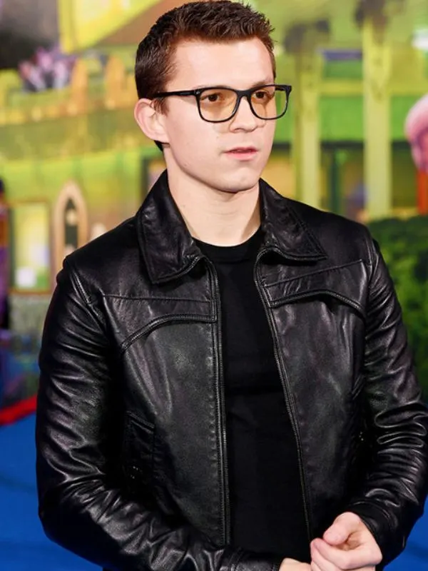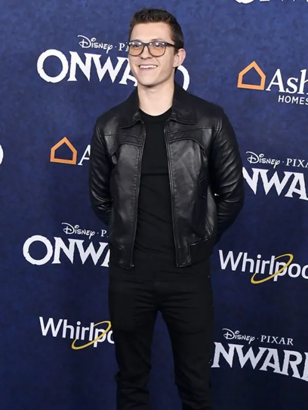 Tom Holland English Actor Black Bomber Jacket